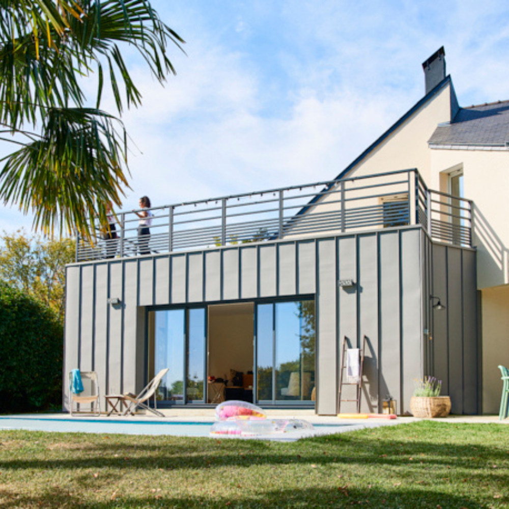 - À l’extérieur, l’aluminium assure une protection optimale contre les intempéries tout en affichant un design épuré, sobre et très graphique — une esthétique qui s’inscrit pile dans les codes industriels.