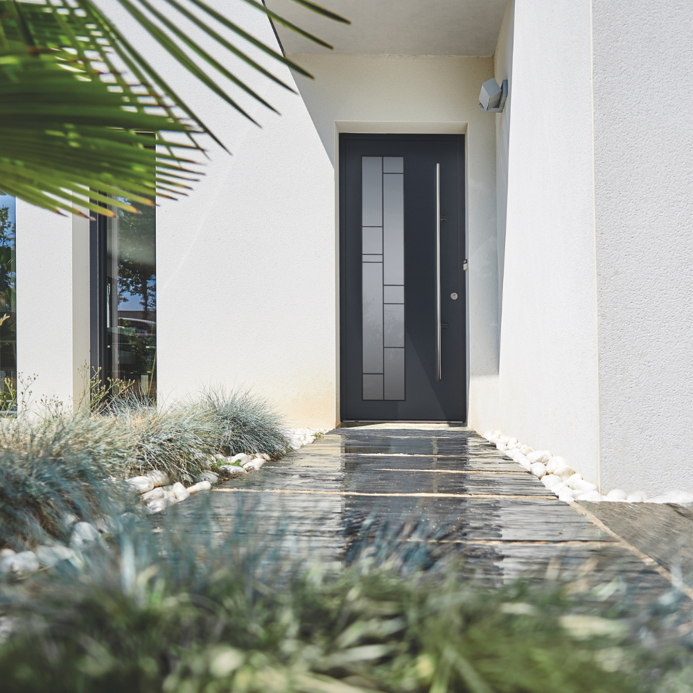 - Personnalisation possible des vitrages ou des inserts décor des gammes de portes d’entrées MéO selon les envies de déco ou les besoins en luminosité.