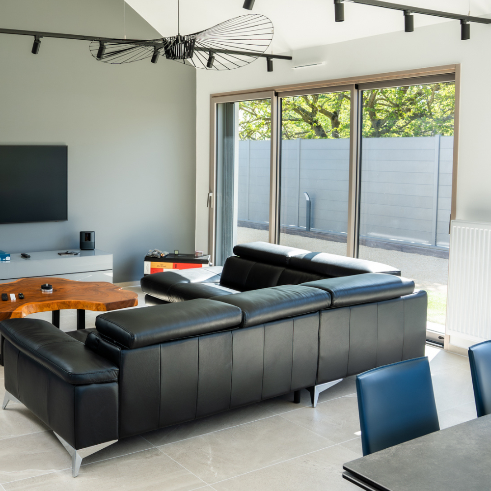 Choisir des menuiseries bois-aluminium, fenêtre, baies coulissantes, verrières, mur rideau et portes d’entrée, c’est offrir une cohérence visuelle à l’ensemble de la pièce :