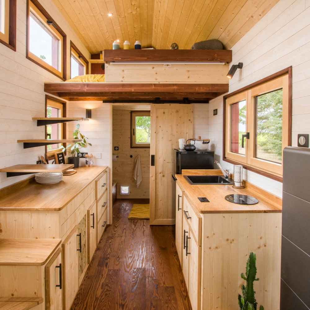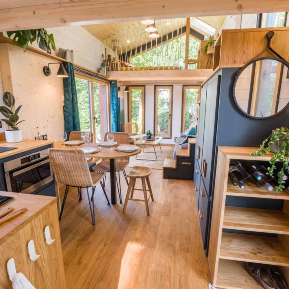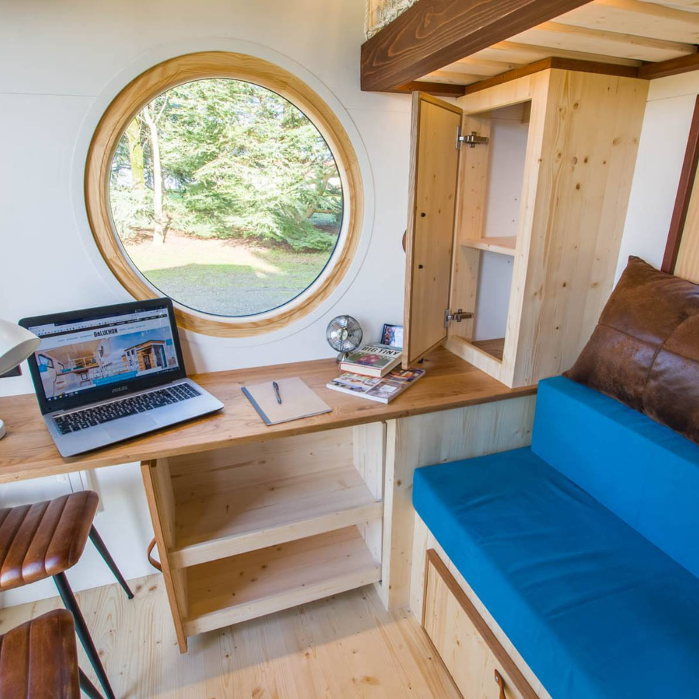 Lorsqu’on ne possède pas assez d’espace, il est important d’optimiser son lieu de vie grâce aux rangements intelligents. Les Tiny house de notre client Baluchon sont l’exemple même de l’aménagement malin des petites surfaces ! Les meubles y conjuguent design et praticité, et présentent des intérieurs parfaitement agencés.