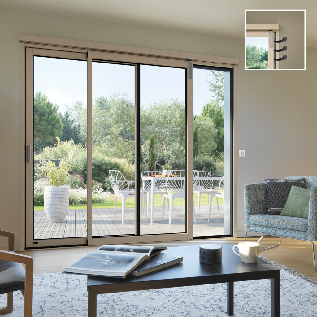 En position Aération, l’ouverture est sécurisée pour empêcher le passage d’un enfant ou d’un animal de compagnie. De plus, la baie se referme automatiquement après un temps prédéfini pour plus de tranquillité.