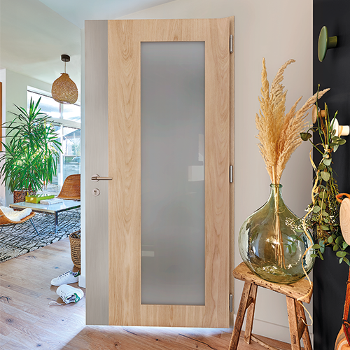 Le large vitrage dépoli de ce modèle de porte d’entrée assure la luminosité de votre logement. Le vitrage affleurant élégant préserve votre intimité tout en ouvrant votre domicile vers l’extérieur. Profitez alors d’une porte sur mesure en bois-aluminium, pour laquelle vous aurez le choix entre 13 finitions d’intérieur bois, et 27 couleurs d’extérieur aluminium. Les rayons du soleil peuvent traverser votre intérieur sans pour autant perdre en isolation thermique, grâce au concept bois-aluminium. Avec ce modèle, vous faites également le choix d’une porte d’entrée à la fois élégante et résistante aux chocs et intempéries.