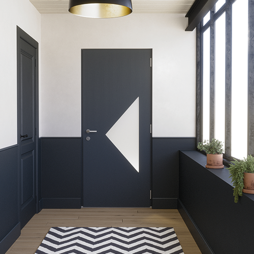 Avec son vitrage dépoli triangulaire placé en son centre, cette porte d’entrée en bois-aluminium vous permet de laisser filtrer les rayons du soleil sans vous exposer à la vue de tous. Cette touche lumineuse originale tranche avec la sobriété des côtés sans motif, pour un résultat résolument contemporain. Vous voulez une porte d’entrée parfaitement en harmonie avec le style de votre maison ? Choisissez entre les 13 finitions bois intérieures et les 27 couleurs extérieures pour obtenir une porte entièrement à votre goût. Le pouvoir isolant du bois et la résistance aux intempéries de l’aluminium vous assurent une porte à la fois robuste et élégante.