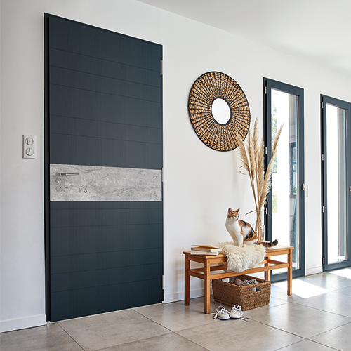 Cette porte pleine rivalise d’élégance avec ses motifs gravés et son insert horizontal. Conçu en bois-aluminium, ce modèle propose 13 finitions possibles pour l’intérieur bois, et 27 couleurs différentes pour l’extérieur aluminium (26 couleurs pour les modèles cintrés). L’insert horizontal, placé au niveau de la poignée, est une excellente solution de personnalisation pour donner du style à votre porte d’entrée. De nombreuses combinaisons sont réalisables : aluminium brossé, ton béton, ton bois, ton brun et ton marbré pour l'intérieur et l'extérieur. Apportez une touche d’originalité supplémentaire en optant pour le modèle cintré de cette porte d’entrée.