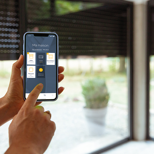 Toutes les solutions d’occultation (volets roulants et brise soleil à lames orientables) commercialisées par MéO sont pilotables depuis un smartphone grâce à la technologie radio io-homecontrol et à la Box TaHoma de Somfy.