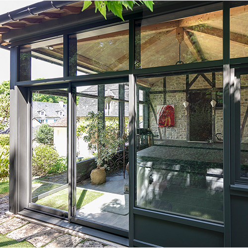L’objectif : créer une pièce supplémentaire qui s’intègre parfaitement à une maison ancienne typique de la région. Le mur rideau et les baies coulissantes de cette extension sont signés MéO, alliant esthétique, confort et durabilité.