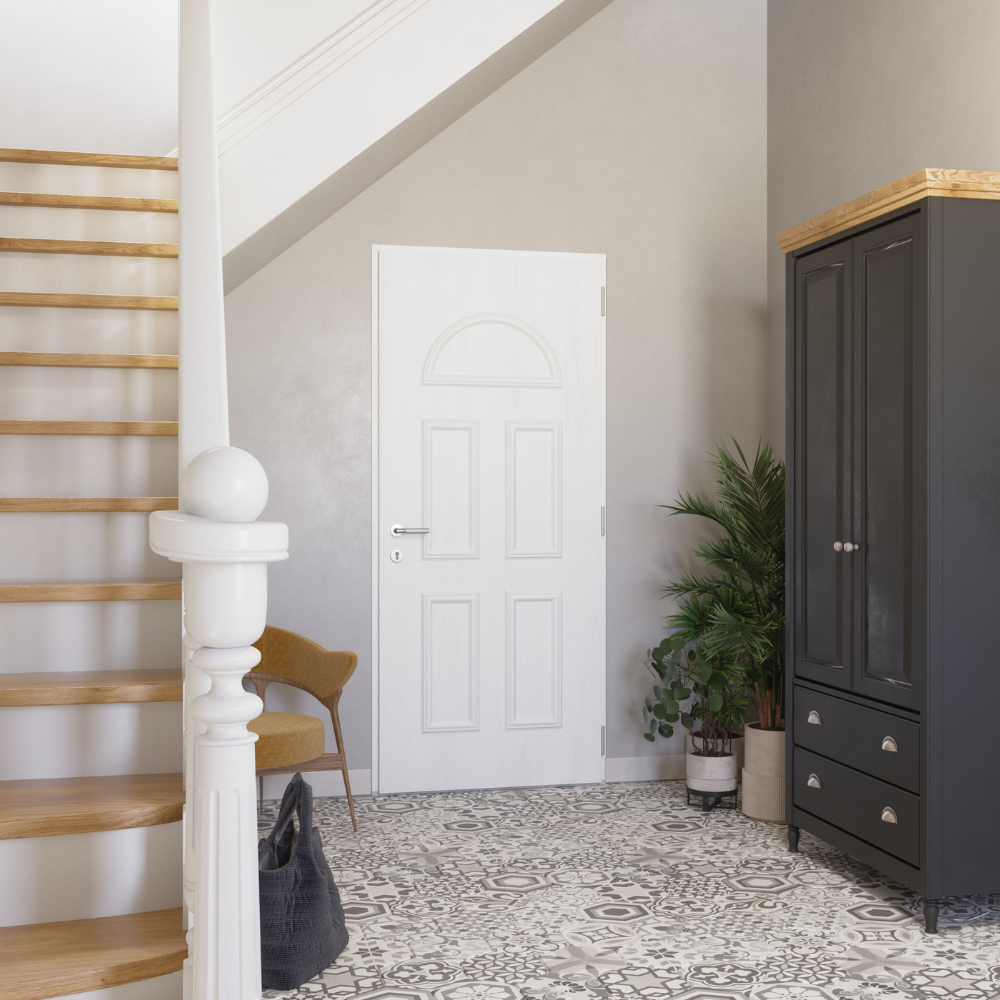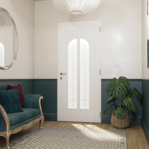 - Pleines : idéales pour des portes d’entrée imposantes, aux formes traditionnelles (avec moulures, cimaises, imposte).