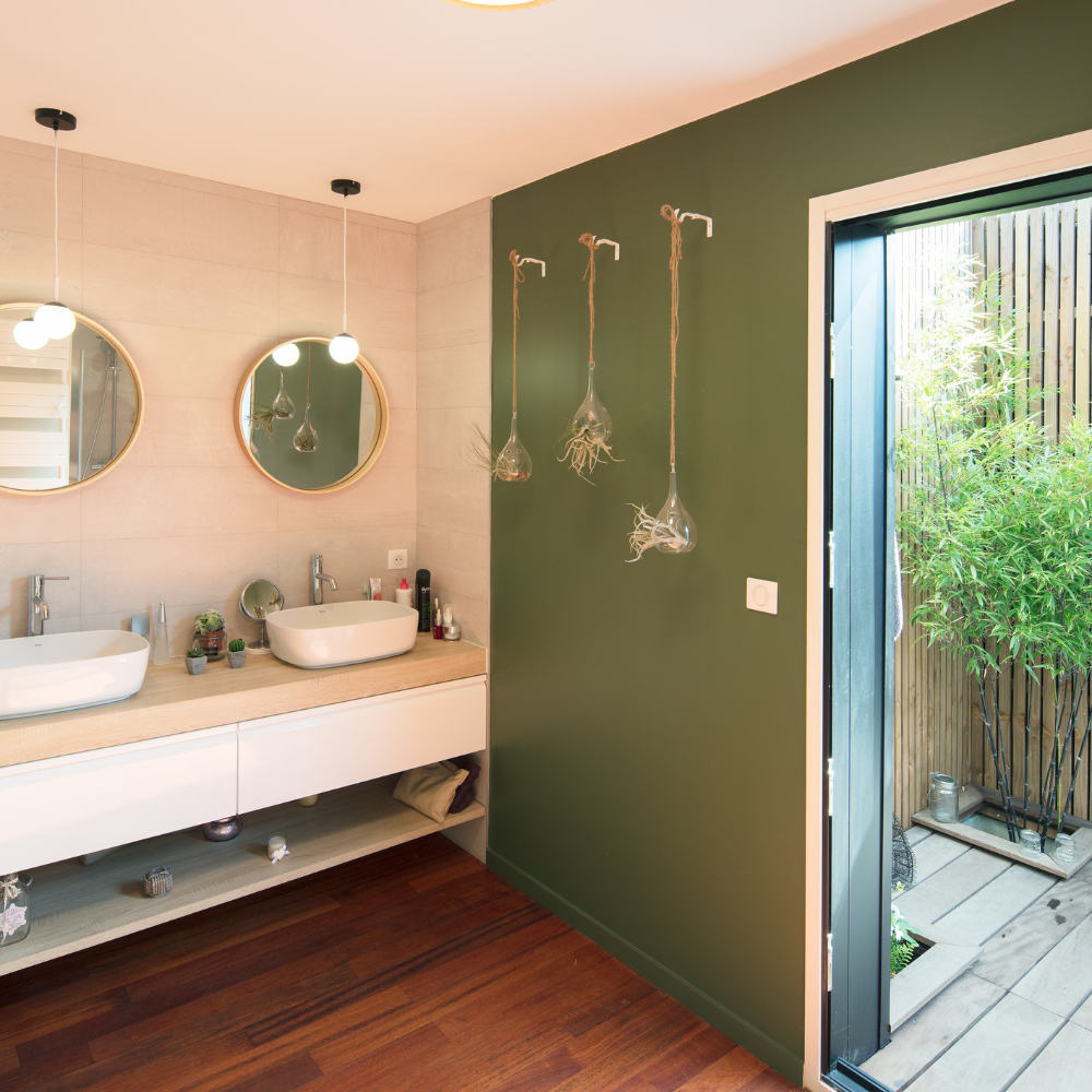 Ces palettes inspirées du végétal installent une ambiance sereine et raffinée. Associées aux teintes bois des menuiseries MéO, elles gagnent en profondeur.