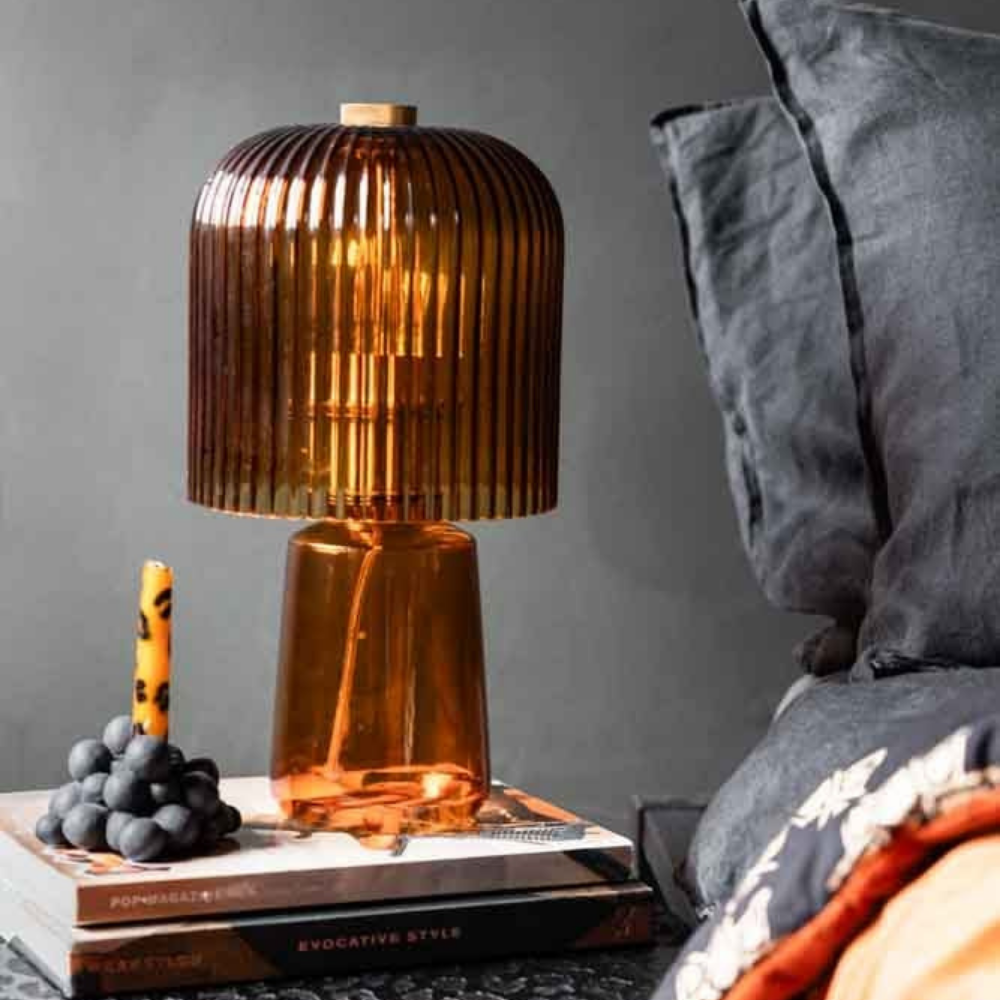 Très tendance cette année, le verre ambré revient dans nos cuisines et salons avec une allure vintage sophistiquée.