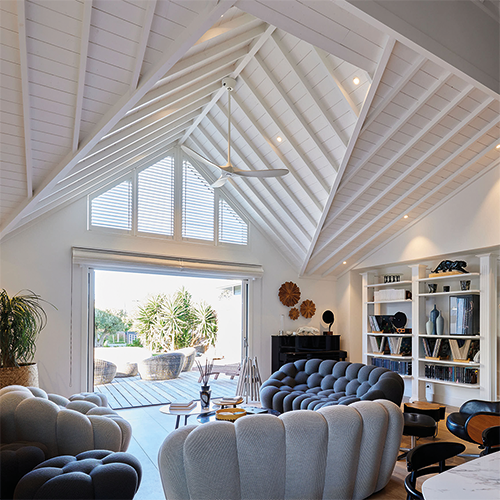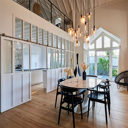 L’aluminium à l’extérieur, a été choisi pour sa facilité d’entretien notamment pour une maison se trouvant en bord de mer. À l’intérieur, les propriétaires ont été séduits par l’esthétisme du bois, apportant chaleur et la possibilité de personnalisation par la peinture. Faire entrer la lumière faisait également partie du projet de ces deux Malouins qui souhaitaient être au plus proche de la nature. Le menuisier a donc opté pour des châssis fixes en triangle. Une décision en adéquation totale avec le style de la maison et faisant entrer un maximum de lumière. Aussi, l’ajout de baies à galandage offrent une ouverture sans encombrement avec le sentiment d’une maison complètement ouverte sur le jardin. Cette maison décorée avec goût, possède désormais une isolation optimale pour affronter l’hiver breton.
